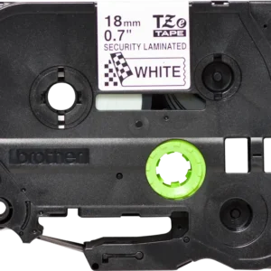 Fita de segurança laminada original Brother TZeSE4 para impressão de etiquetas com etiquetadora eletrônica. Esta fita é desenvolvida para que os bens que devem ser identificados ou protegidos não sejam adulterados, pois esta fita deixa uma marca de segurança caso tenha sido adulterada ou alterada e não permite que seja colada novamente. Evita a alteração do elemento deixando evidências visíveis quando uma verificação deve ser realizada e evita que uma etiqueta seja transferida para outro elemento. Utilizável em equipamentos que exibem o logotipo TZ e TZe. Concentração de Bisfenol A inferior a 0,02% em peso (em conformidade com a regulamentação em vigor). Características: -Texto preto sobre fundo branco. -Largura de 18 mm. -Comprimento de 8 metros. Adequado para uso nas seguintes impressoras: