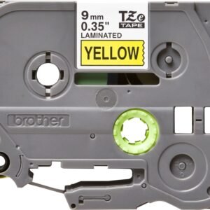 Fita de etiqueta laminada original Brother TZe621 – Texto preto sobre fundo amarelo – Largura 9 mm x 8 metros