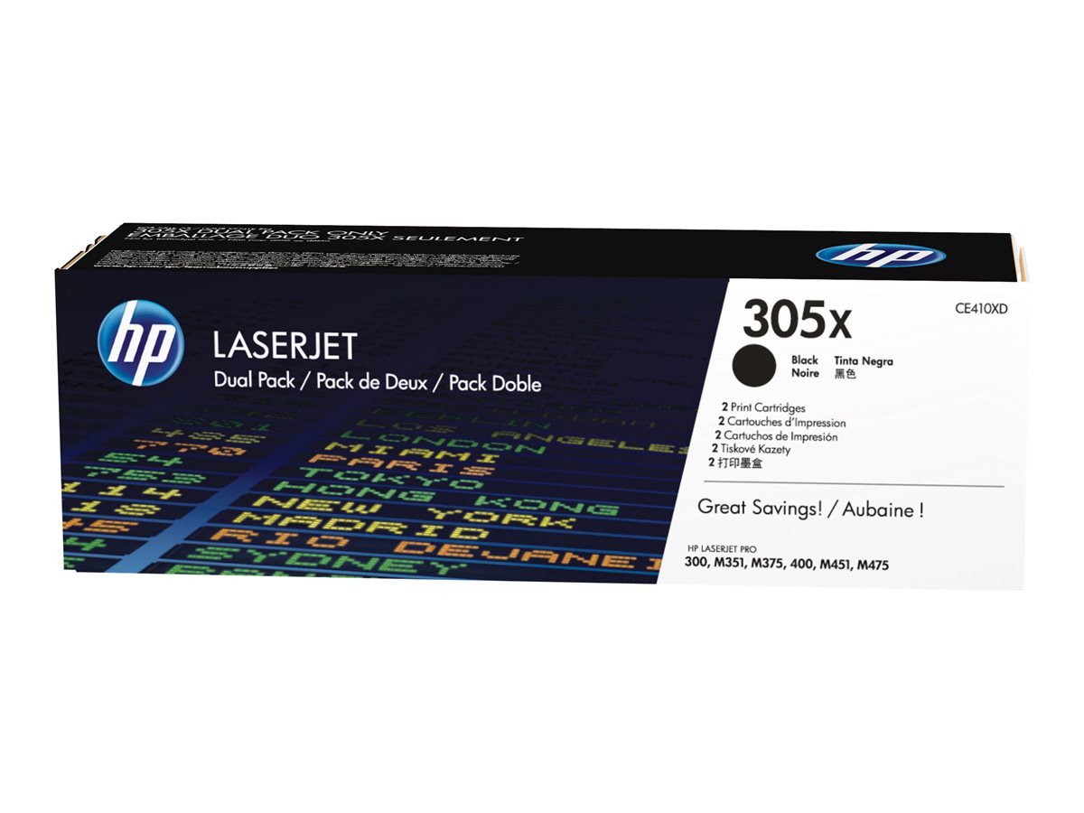 Pacote preto HP CE410X com 2 cartuchos de toner originais - 305X