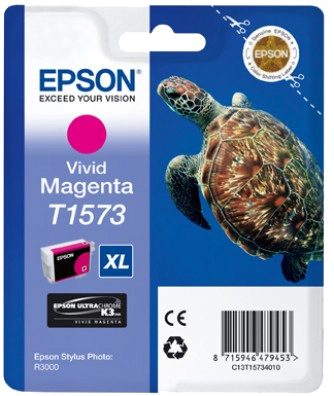 Cartucho de tinta Epson T1573 (C13T15734010) original de alta qualidade. Adequado para uso nas seguintes impressoras: Epson Stylus Photo R3000 Rendimento: 25,9 ml