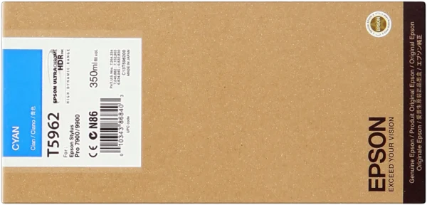 Cartucho de tinta original Epson T5962 (C13T596200) de alta qualidade. Adequado para uso nas seguintes impressoras: Epson Stylus Pro 7700 Epson Stylus Pro 7890 Epson Stylus Pro 7890 Spectro Proofer Epson Stylus Pro 7890 Spectro Proofer UV Epson Stylus Pro 7900 Epson Stylus Pro 7900 Spectro Proofer Epson Stylus Pro 7900 Spectro Proofer UV Epson Stylus Pro 9700 Epson Stylus Pro 9890 Epson Stylus Pro 9890 Spectro Proofer Epson Stylus Pro 9890 Spectro Proofer UV Epson Stylus Pro 9900 Epson Stylus Pro 9900 Spectro Proofer Epson Stylus Pro 9900 Spectro Proofer UV Epson Stylus Pro WT7900 Rendimento: 350 ml