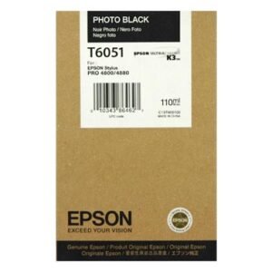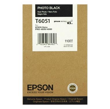 Cartucho de tinta original Epson T6051 (C13T605100) de alta qualidade. Adequado para uso nas seguintes impressoras: Epson Stylus Pro 4800 Epson Stylus Pro 4880 Rendimento: 110 ml