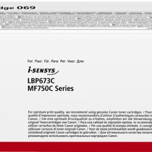 Cartucho de toner Canon 069 (5094C002) original de alta qualidade. Adequado para uso nas seguintes impressoras: Canon LBP 673Cdw Canon MF 752Cdw Canon MF 754Cdw Canon i-Sensys LBP 673Cdw Canon i-Sensys MF 752Cdw Canon i-Sensys MF 754Cdw Rendimento: 2.100 páginas
