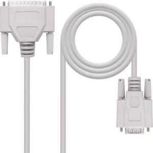 Cabo de modem serial com conector DB9 fêmea em uma extremidade e conector DB25 macho na outra. Especificações: -Conexão de pinos: 2-2, 3-3, 8-4, 7-5, 4-6, 5-7, 6-20 -Cor do produto: Bege -Comprimento do cabo: 1,80 m -Conector de gênero: Feminino/ Masculino -Certificação: RoHS