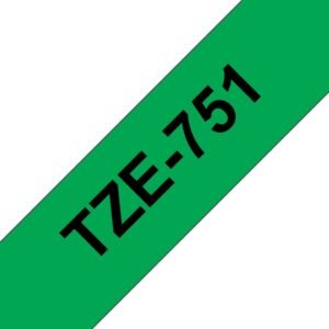 Fita de etiqueta laminada genérica Brother TZe751 – Texto preto sobre fundo verde – Largura 24 mm x 8 metros
