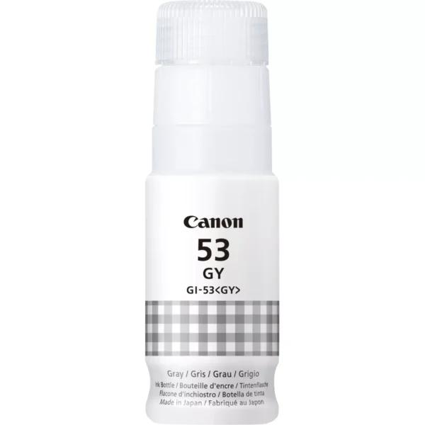 Frasco de tinta Canon GI53 (GI53GY/4708C001) original de alta qualidade. Adequado para uso nas seguintes impressoras: Canon Pixma G 550 Canon Pixma G 650 Rendimento: 3.800 páginas