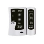 Testador profissional para testar cabos RJ11 / RJ12 / RJ45, USB e cabos coaxiais. As verificações de cabos (RJ45, RJ11, BNC) podem ser realizadas com a unidade remota a até 600 pés de distância da unidade principal. Inclui um indicador do funcionamento da bateria do dispositivo. Especificações: -Teste de um botão -Teste de cabo de rede STP e UTP -Teste de cabo USB e cabo coaxial com conector BNC -Design ergonômico e portátil -Unidade remota colocada na unidade principal -Indicadores LED para conexões e falhas – Emite um som para notificar a conclusão dos testes -Cor: Branco -Regulamentos: RoHS -Teste de operação: 100% testado